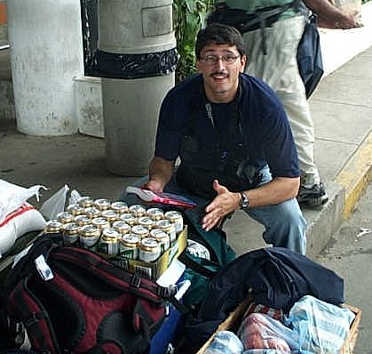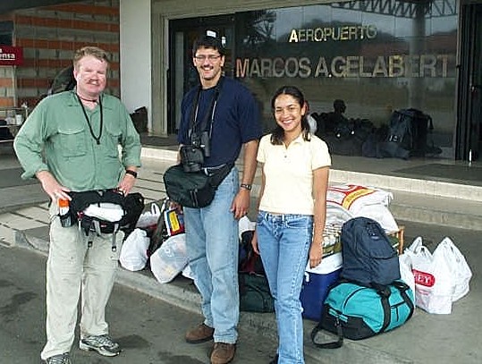 The right picture shows Steve, Hernan Arouz (guide), and a staff member,