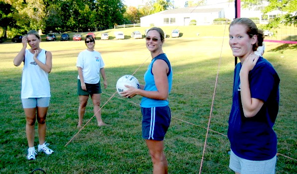 11 people, 2 nets, 70 degrees, no clouds: A perfect day.
